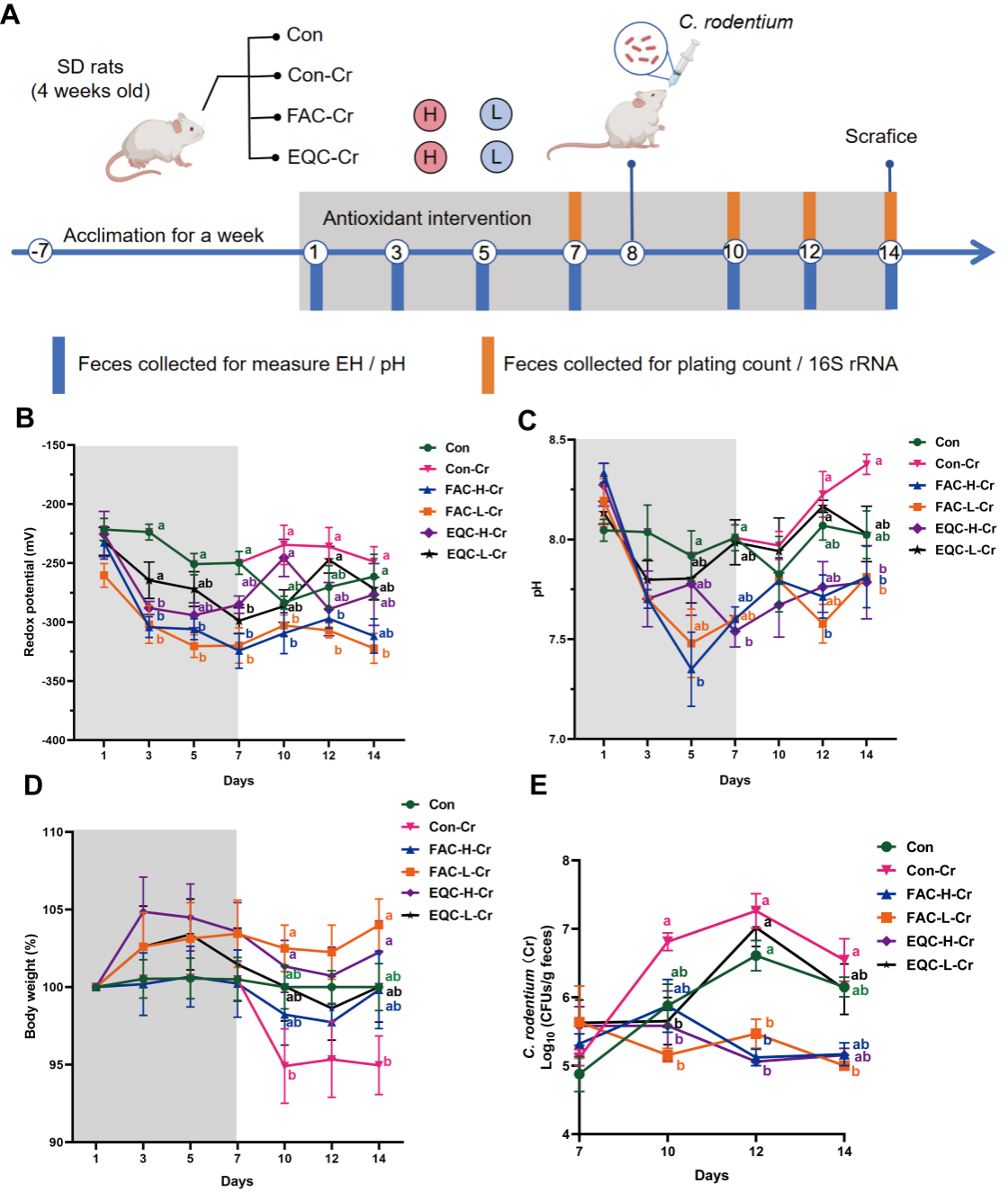 肠道氧化还原电位是反映肠道微环境动态特征的关键参数,在塑造肠道微生物组成及保障动物健康方面起关键作用。我们先前研究发现,果胶补充与肠道氧化还原电位降低协同作用,可加速抗生素后肠道菌群重建(ISME J,2024),这提示靶向调控肠道氧化还原电位是改善肠道健康的有效策略。
