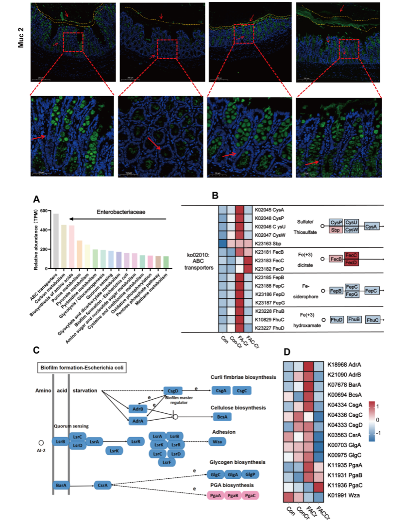 图2 包被FA促进肠道黏液分泌并改变肠杆菌的功能